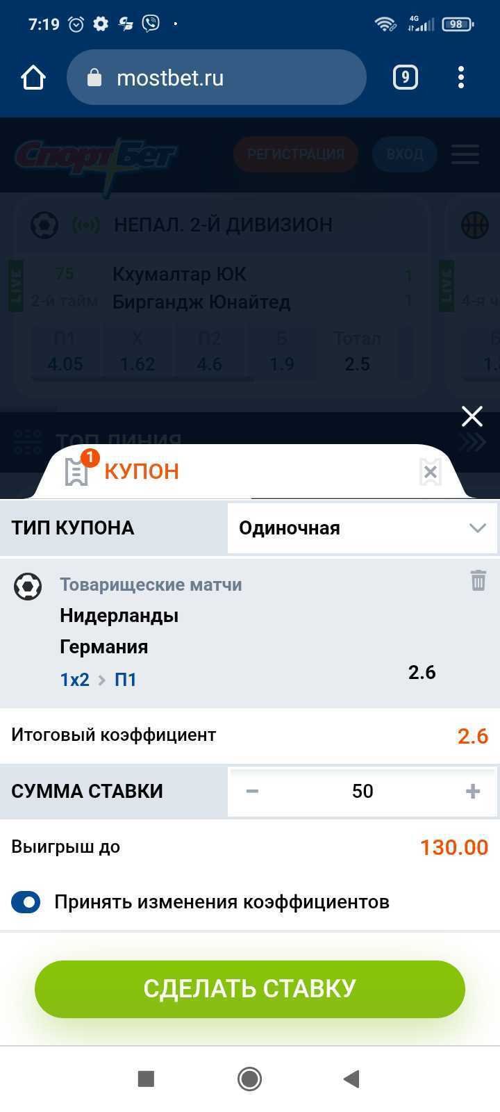 Оформление ставки/купона, расчет ставок Для выбора ставки и ее регистрации в системе достаточно кликнуть по интересующему коэффициенту. Вариант будет немедленно отображен в купоне, который находится в правой части экрана. БК «СпортБет» («Мостбет») предлагает три типа ставок: ординар, экспресс и система. Соответствующий выбор игрок делает уже непосредственно в форме купона. В купоне также отображается максимальная сумма для выбранной ставки и потенциальный выигрыш игрока.